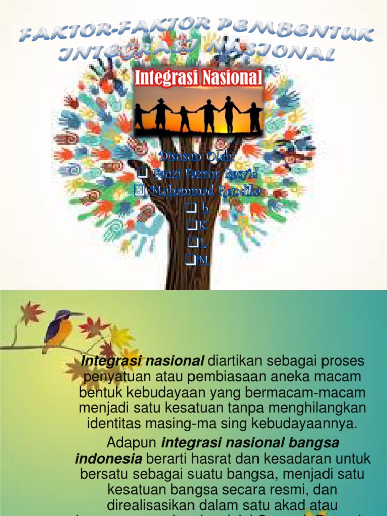 Manakala, konsep integrasi adalah lebih luas. Integrasi nasional di indonesia, kami sadar materi kuliah ini terdapat banyak kekurangan. Oleh karena itu, kami mengharapkan adanya kritik dan saran yang bersifat membangun dari berbagai pihak, agar bisa menjadi lebih baik lagi. • integrasi nasional merupakan integrasi sosial di peringkat kebangsaan atau atau. Integrasi nasional merupakan satu proses berbentuk abstrak, satu proses penyatuan atau ikatan yang sebati dan berpanjangan (modul kenegaraan, 2011: