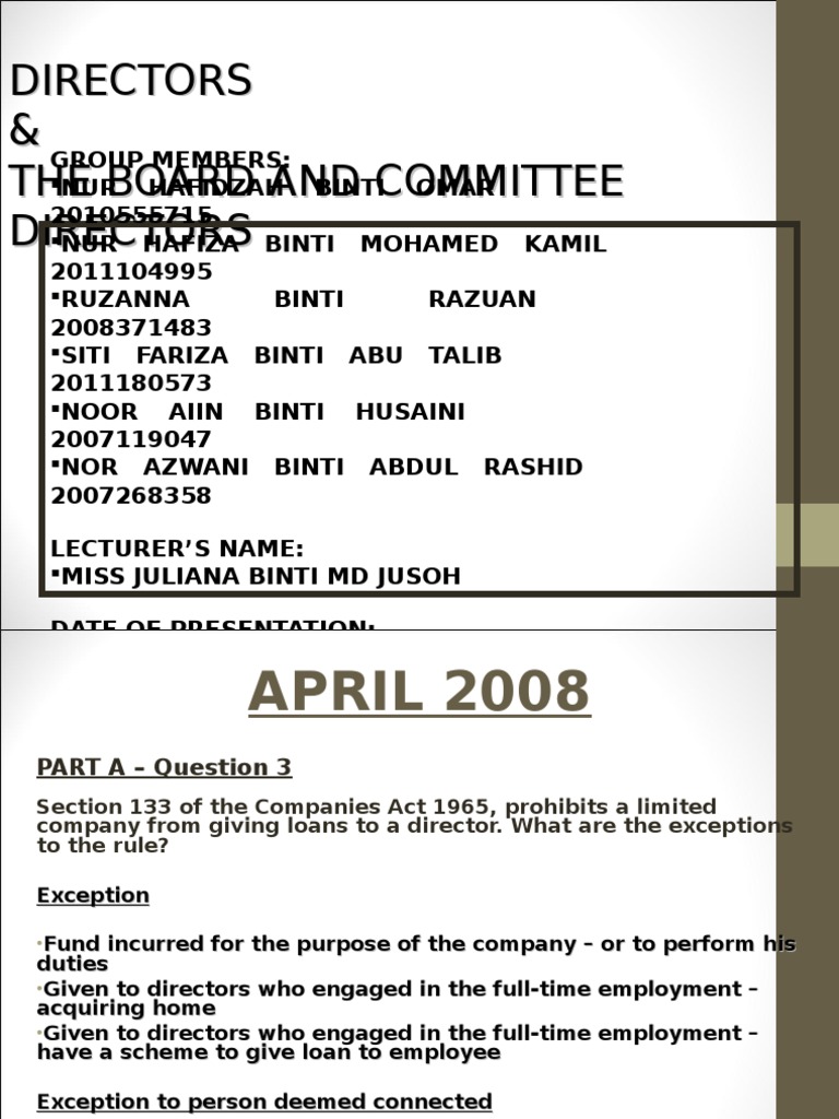 New Directions In Duties And Liabilities Of Directors Ppt Download from slideplayer.com Click here to view summary of the companies act 2016 This is why a digital company secretary could be better for your company. 18 laws of malaysia act 125 section 295. throughout malaysia—15 april 1966, p.u. Section 133a(1) of the ca prohibits making of loan to persons connected with directors of a company or its holding company. 168/1966 part i preliminary short title 1. Section 133 of the companies act 1965, prohibits a limited company from giving loans to a director. Dealing by a company in its own shares, etc.